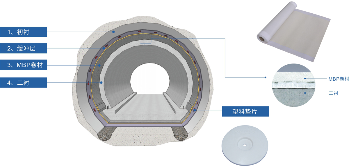 凱倫暗挖隧道系統(tǒng)解決方案,以“融合防水”為理念,采用以MBP-P為代表的高分子自粘膠膜預(yù)鋪防水卷材,能有效地與后續(xù)澆筑的混凝土結(jié)構(gòu)融為一體,避免水在兩者之間竄流。近幾年,該卷材也開始運用于隧道項目,并被多個鐵路建設(shè)部門所關(guān)注。